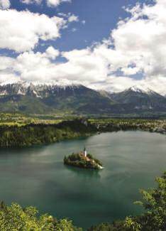 shores of an idyllic, romantic lake in northwestern Slovenia.