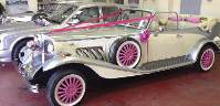classic car with a floral arrangement and silk ribbons, to whisk