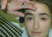edge of each eye, working